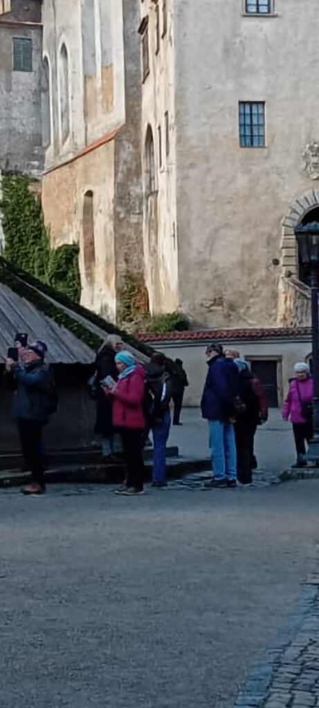 Když jsme došli na I. Nádvoří, už jsem byla – teď by se hodilo říct klidná, ale to jsem rozhodně nebyla . Jen jsem našla trochu pevné půdy pod nohama, hlavně díky tomu, že jsem věděla, že budu mluvit o Rožmbercích. Hlavně o Vilémovi, to byl podle mě fakt velkej frajer a můj oblíbenec.